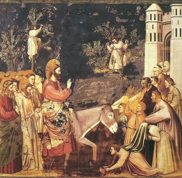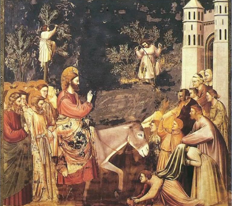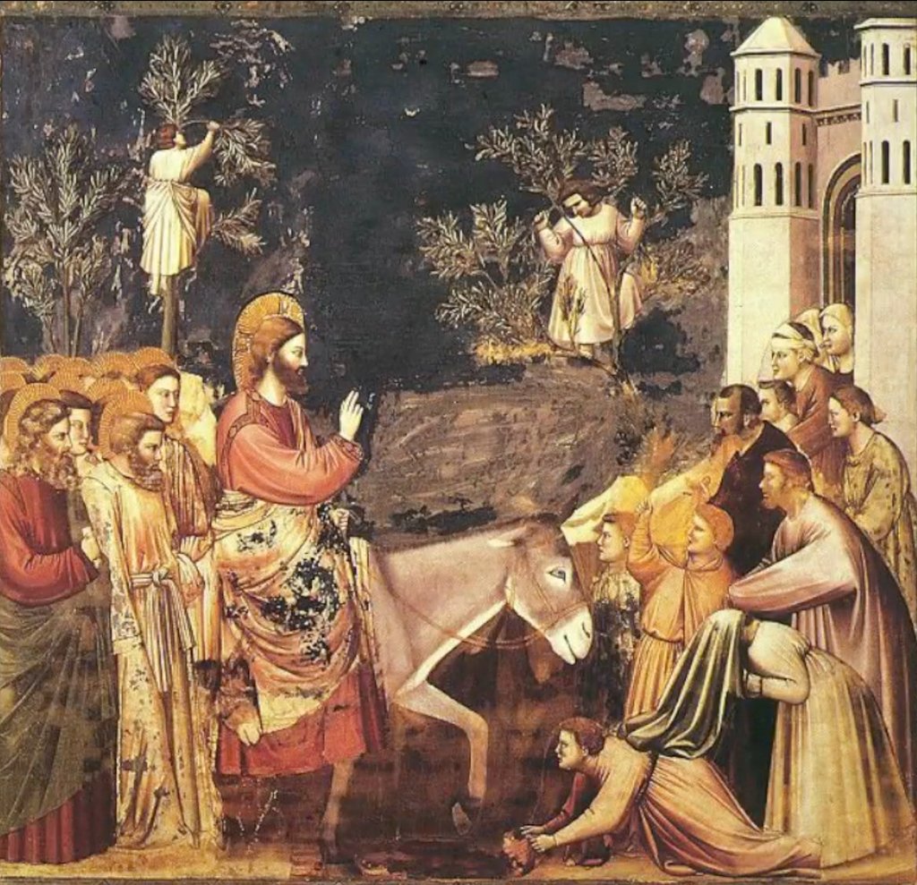 Palm Sunday is a day of high emotions, teetering on the edge between happiness and heartbreak. Giotto’s Entry into Jerusalem from the Scrovegni Chapel invites us into a scene of celebration, and true to his form, Giotto draws us beyond the formality of the Byzantine style, and presents a true to life, vibrant scene.